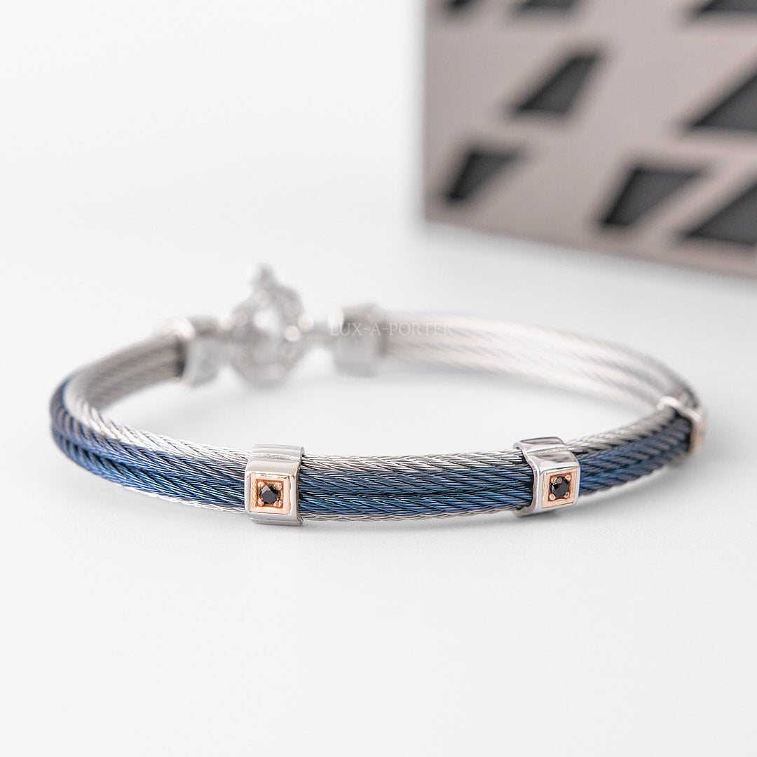 Crafted in Italy, it merges rose gold, steel, and blue PVD with diamond accents. A distinctive piece that elevates any look.