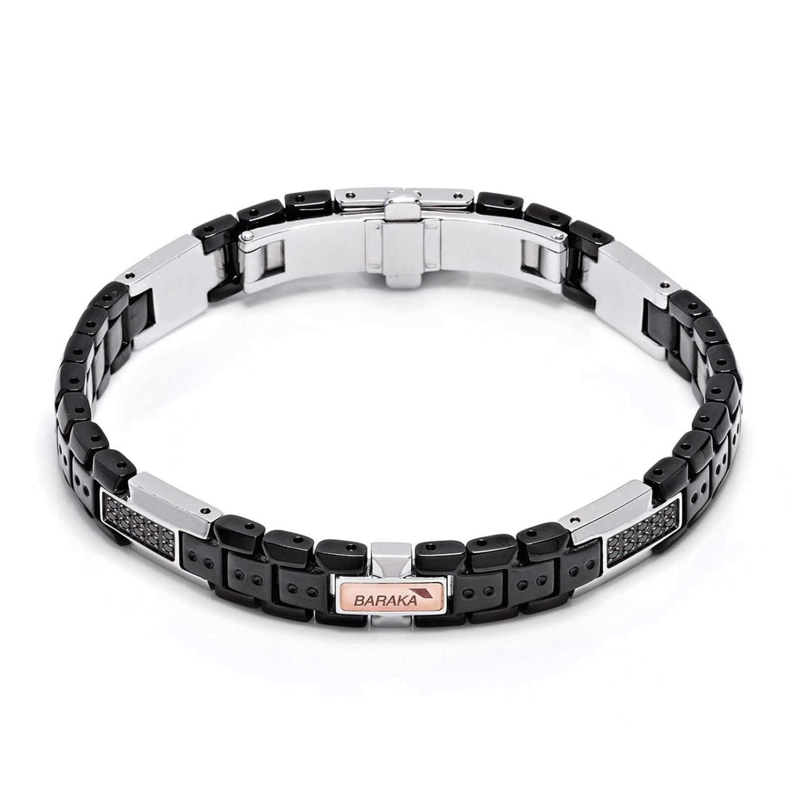 Bracelet in stainless steel with black PVD, rose gold with black diamonds.