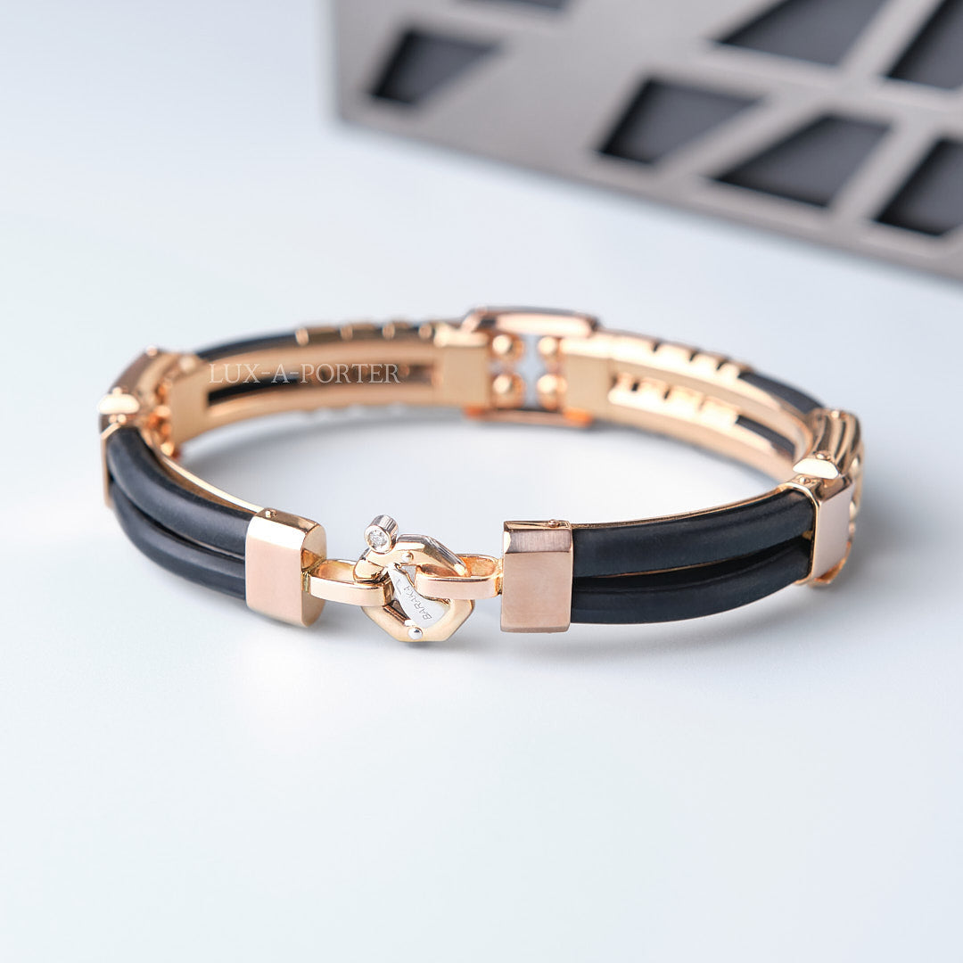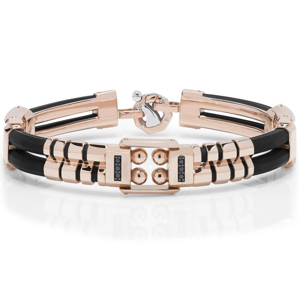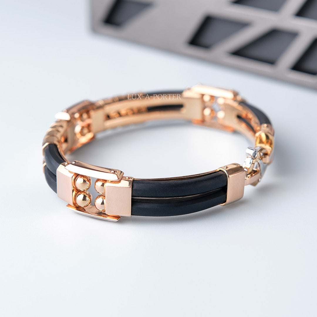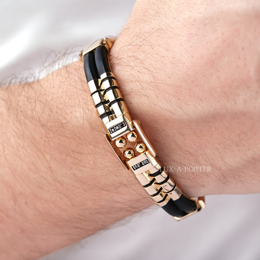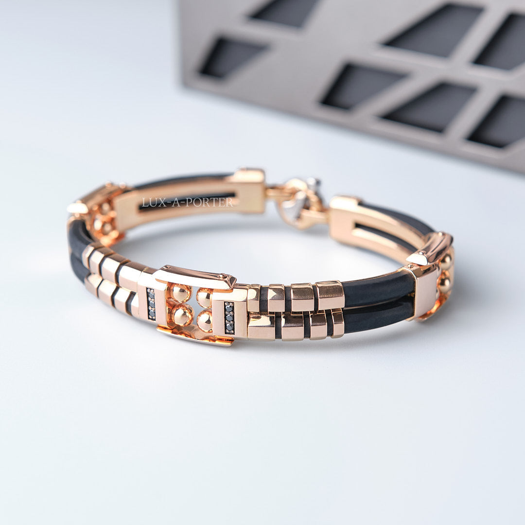 Rose gold and black diamonds create a bold, confident look, while a white gold clasp adds a refined touch.