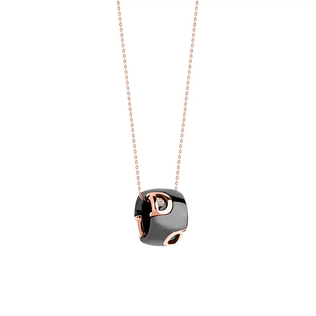 Black ceramic and rose gold necklace with diamond.