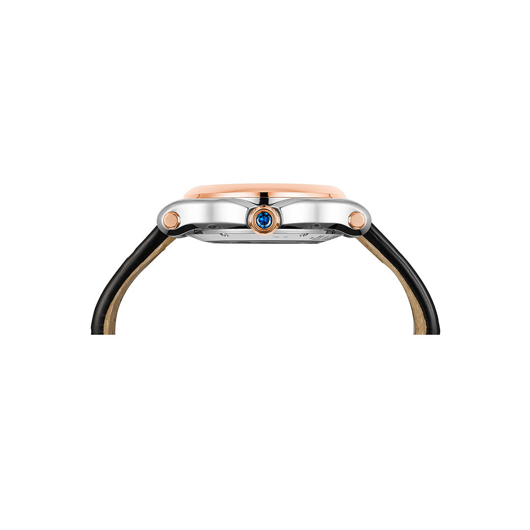 Watches in stainless steel and rose gold case with diamonds, sapphire glass and black alligator leather strap.