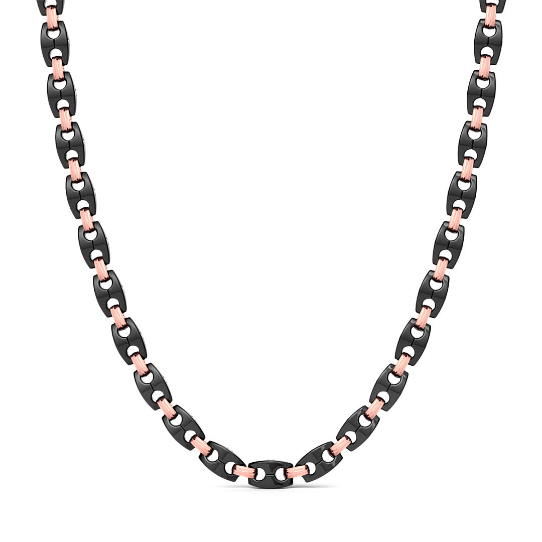 Black ceramic сhain with rose gold and white diamonds.