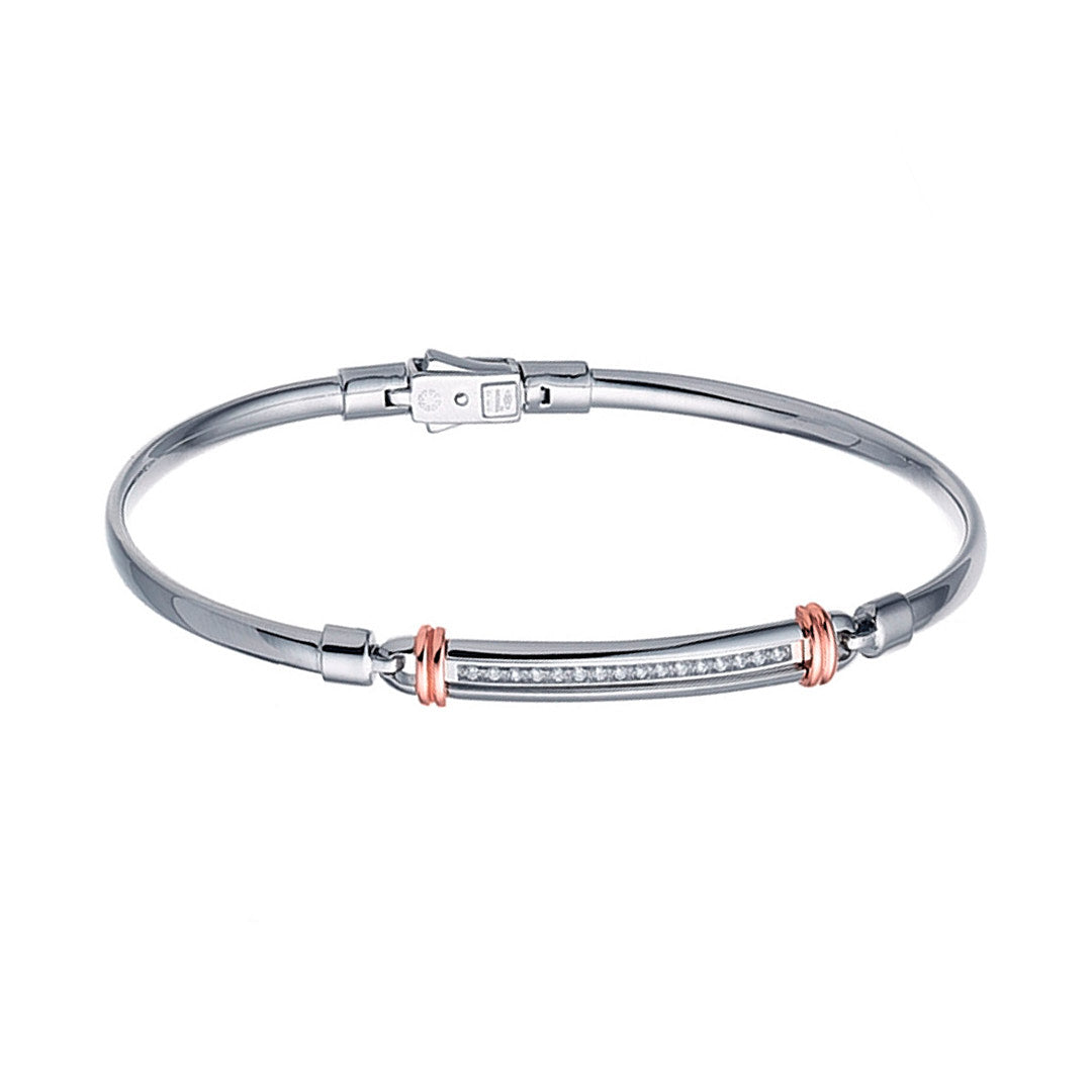 White and rose gold bracelet with white diamonds.