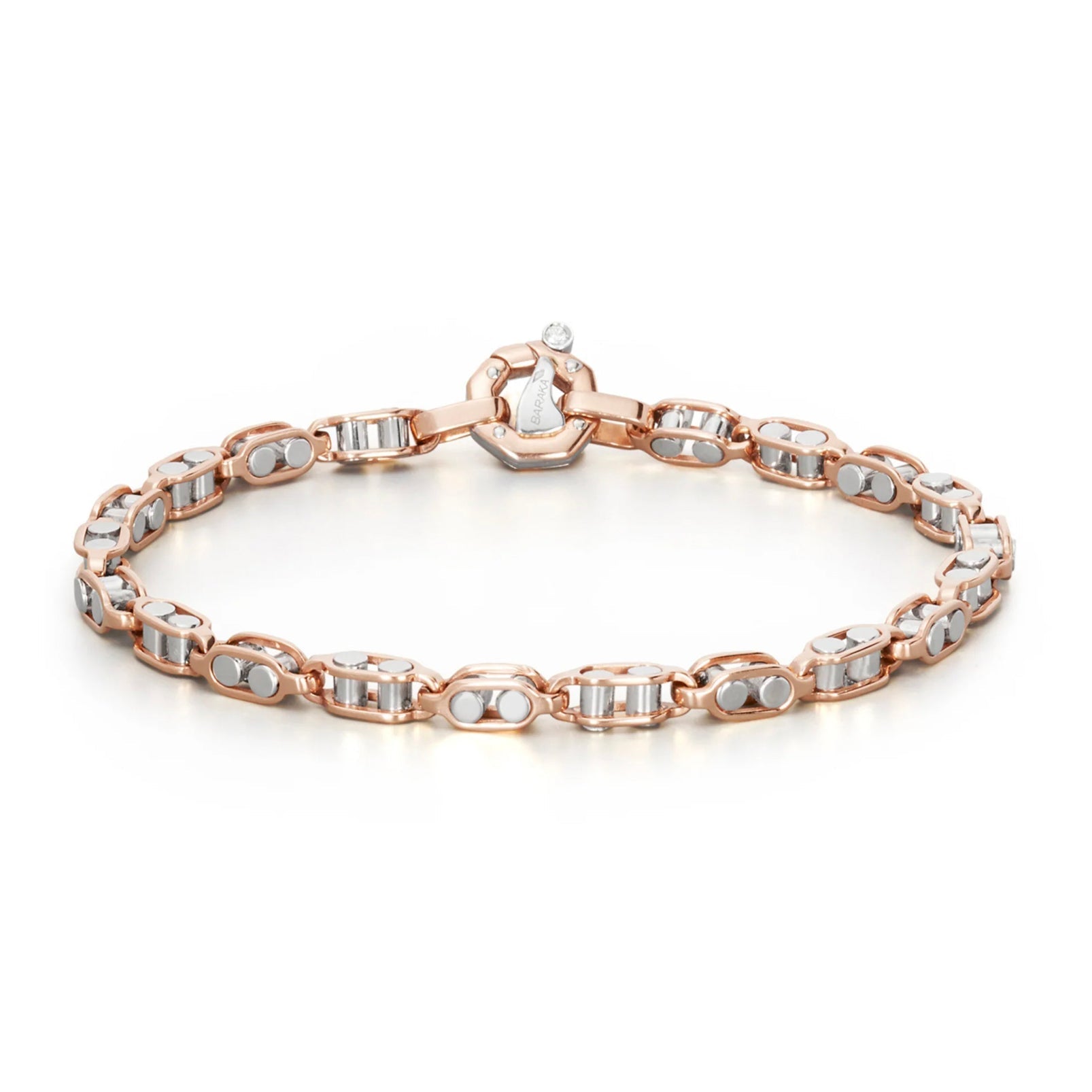 White and rose gold bracelet. White diamond in the clasp.